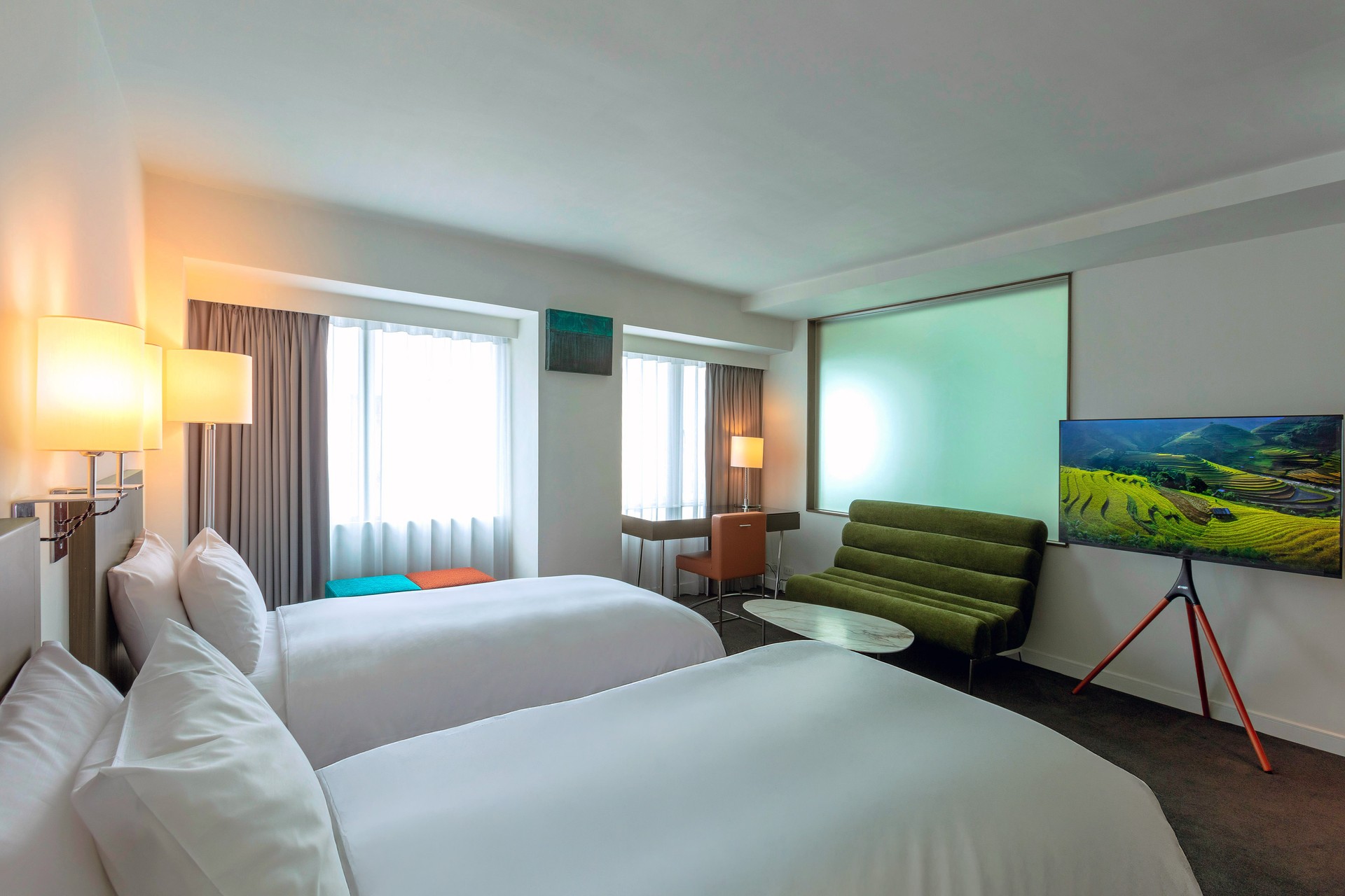 寬敞明亮的空間,配有兩張單人床,滿足舒適住宿需求。部份房型享有城市景觀,設有舒適的座椅區和辦公桌。